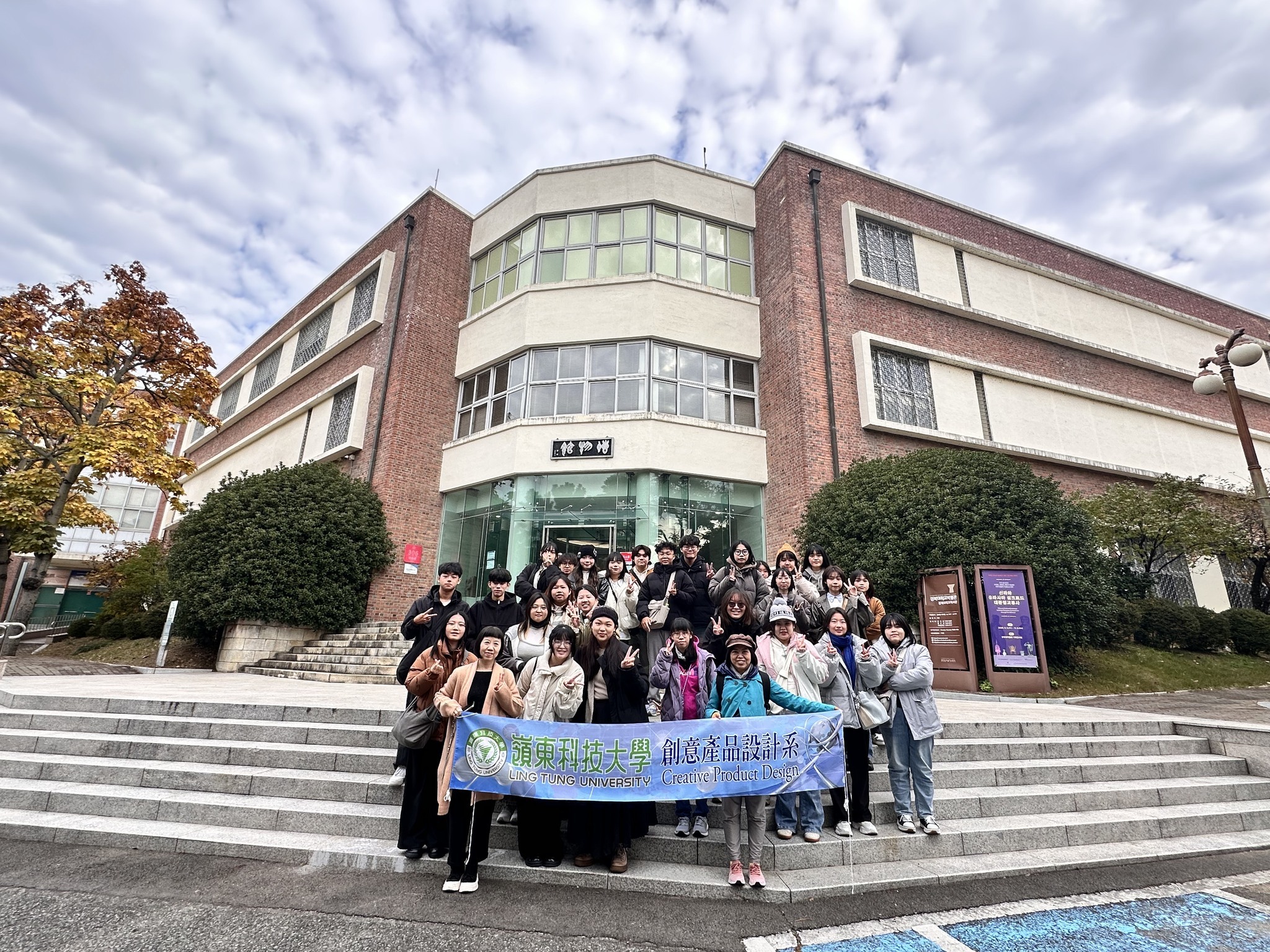 本年度創意產品設計系國際見習由劉宜欣老師帶隊,共有29位大學部及碩士班學生共同參與。本次海外移地教學主要合作學校為大邱大學與慶北大學,值得一提的是,目前本系已有兩位學生於大邱大學進行第二年的國際交換學習,展現持續深化的國際教育連結。